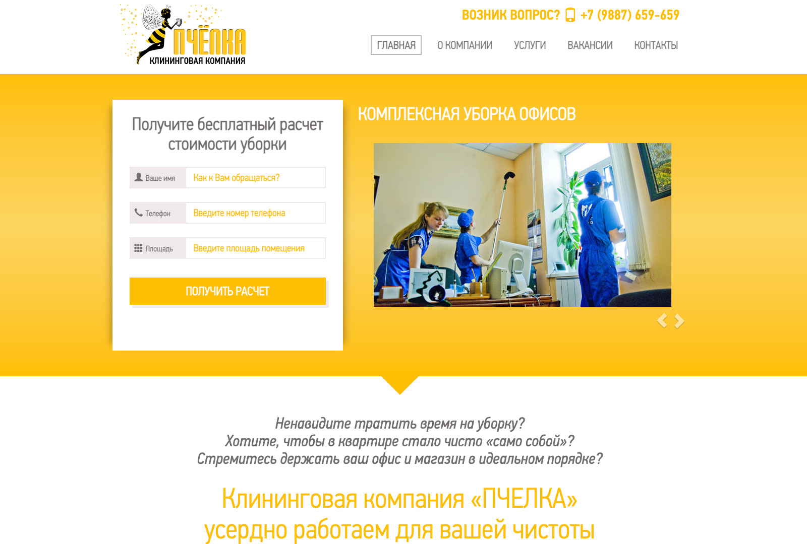 Хотите такой же сайт как Клининговая компания ПЧЕЛКА ?