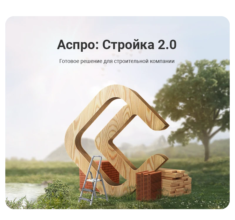 Аспро: Стройка 2.0 一 готовый сайт для компаний строительной отрасли. Сайт является редакцией платформы Аспро: Корпоративный сайт 3.0. Решение подходит всем компаниям строительной сферы. Предлагайте залить фундамент, возвести постройку, а также отделку и ремонт.