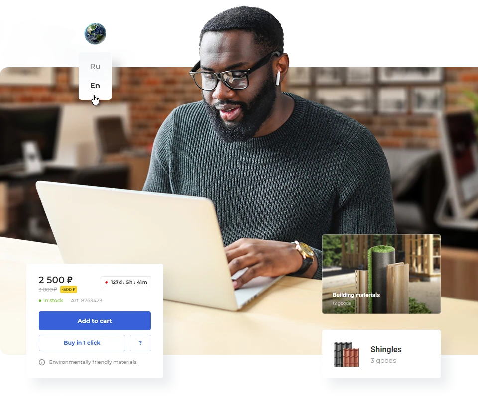 Продвигайте бренд, продавайте товары, услуги и тарифы, получайте онлайн-оплату через специальные модули. Выходите за рамки регионов на международные рынки — впервые в продукте Аспро реализована версия сайта на английском языке.